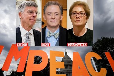 William B. Taylor Jr., acting ambassador to Ukraine, 72, was fifth in his class of 800 at West Point, where he was cadet battalion commander. Bronze Star, Vietnam, 82nd Airborne, 101st Airborne, 506th Infantry, Second Cavalry. After that, government work and diplomacy. He's known for his modesty. You couldn't be more impressive. Testifying along with him George P. Kent, younger and a different sort—studied Russian history and literature at Harvard and Johns Hopkins, speaks Ukrainian and Russian, 27 years in the foreign service.