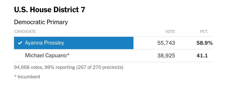 Ayanna Pressley, a 44-year-old Boston city councilor and former John Kerry staffer, defeated 10-term incumbent Rep. Michael Capuano in Tuesday's Democratic primary election in Massachusetts's 7th Congressional District.