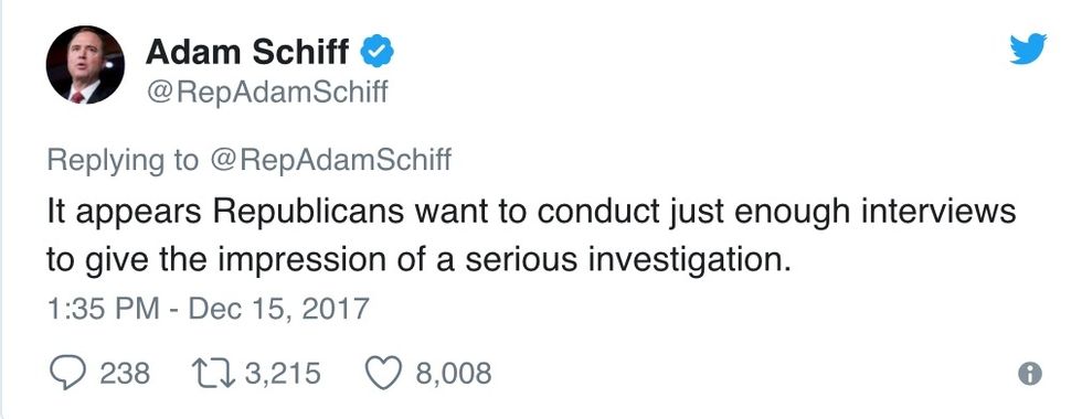 "It appears Republicans want to conduct just enough interviews to give the impression of a serious investigation," he added.