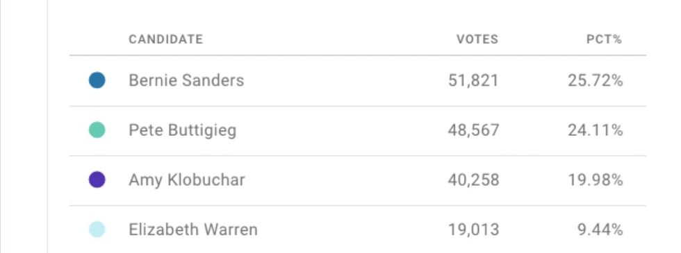 Buttigieg is 1.6% from Sanders, Klobuchar 5.74%. Remember that New Hampshire is an open primary. Independents and Republicans who were known to favor Sanders could vote. What percentage of the New Hampshire voters were they? More than 1.6%?