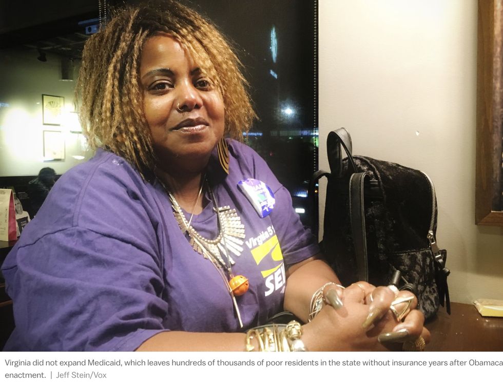 If Virginia had expanded Medicaid, Harris and about 400,000 other Virginians would have health insurance. But it didn't, and Harris, who makes about $25,000 per year — or too much to qualify for Medicaid in the state — is scrambling to get all the medical care she can now for her high blood pressure, long-overdue trips to the dentist, and pain in her knees.