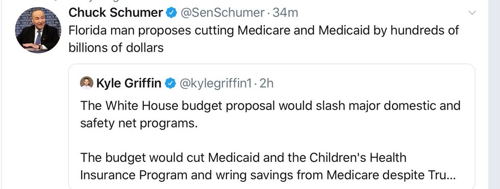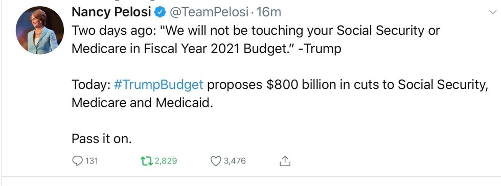 Voices4America Post Script. Who was that man at the State of the Union who said no cuts to Medicare, Medicaid or Social Security? This guy proposed $800 cuts to them. #DuckTrump As @SpeakerPelosi said, pass it on.