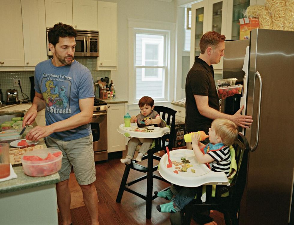 When Bart Heynen showed up at a Brooklyn home of a family he hoped to photograph in 2015, his subjects weren't quite ready. One dad was busy finishing some ironing and the other was cleaning the house, newborn son in arms.
