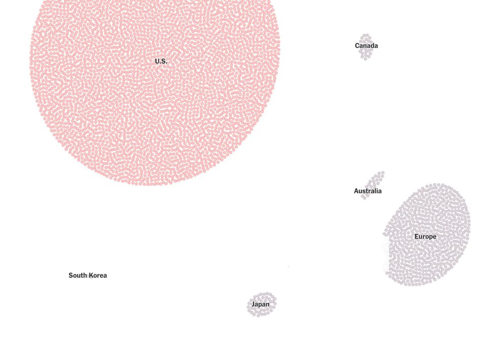 That's more than five times as many as in all of Europe, Canada, Japan, South Korea and Australia, combined.