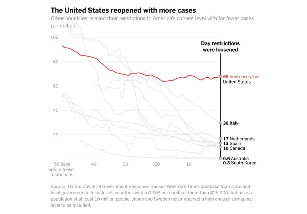 Mr. Kemp's decision was part of a pattern: Across the United States, caseloads were typically much higher when the economy reopened than in other countries.