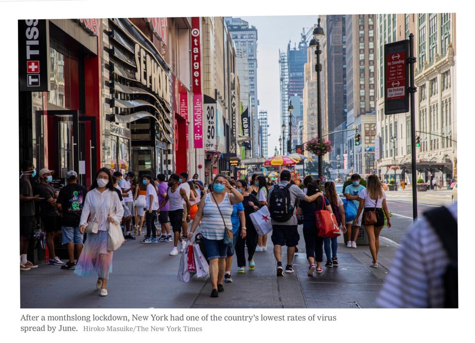 New York — both the city and the state — offers a useful case study. Like much of Europe, New York responded too slowly to the first wave of the virus. As late as March 15, Mayor Bill de Blasio encouraged people to go to their neighborhood bar.
