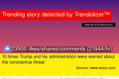 Why it matters: Reporting from Axios, the New York Times, Washington Post, AP and other media outlets has revealed that Trump and his administration were repeatedly warned about the threat that the virus could pose to American lives and the economy. Earlier action could have curbed the spread.
