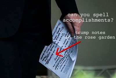 Act 2: Stride to a podium at a hastily arranged Rose Garden news conference to say he won't work with Democrats on infrastructure or anything else while they pursue the "investigation track."