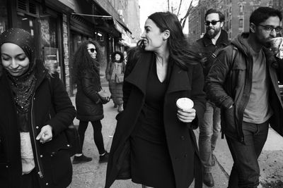 The reception in Washington hasn't been quite as warm. Ocasio-Cortez is among the most visible of a group of young, left-wing freshman Democrats—-including Representatives Ilhan Omar of Minnesota and Rashida Tlaib of Michigan—who have sparked controversy for their views on everything from impeachment to Israel. Some fellow first-term Democrats welcome the spotlight she brings. "We have this really dynamic rock star who is getting a lot of attention," says Representative Haley Stevens of Michigan, a co-president of the freshman class. "Why is that a bad thing?" In person, Democratic sources say, Ocasio-Cortez is friendly and respectful, nothing like the firebrand who spars with -critics online. "She's quiet as a mouse" in caucus meetings, says one congressional source.