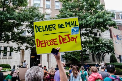 Protesters in Washington on Saturday called for Mr. DeJoy's resignation, saying he was undercutting the Postal Service and threatening Americans' ability to vote.