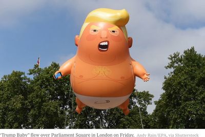 There were dueling Trump babies — the real one and the blimp — when the president sucker punched his hostess. Trump gave Rupert Murdoch's Sun an interview criticizing Prime Minister May on Brexit, threatening her on trade, praising her rival, Boris Johnson, and throwing in some white nationalist dog whistles as clotted cream on the crumpet.