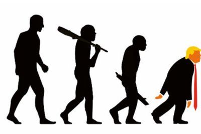 In the image, Trump is depicted last in a line of devolving humans, a spoof of the scientific illustration "March of Progress."