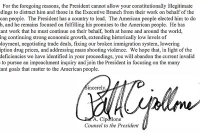 The letter reads less like a cogent legal argument than a regurgitation of Trump's top impeachment talking points dressed up in legalese.