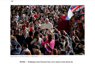 ROME — Walking to the Eternal City, over stones worn down by the sandals of centurions, on a pilgrim's path nearly forgotten in all the layers of Italian time, the mind focuses as the muscles stiffen.