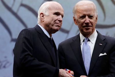 Sen. John McCain (R-AZ) was awarded the 2017 Liberty Medal at the National Constitution Center in Philadelphia, Pennsylvania on Monday evening. After receiving the honor, which was presented to him by former Vice President Joe Biden, the highly respected war hero went on to give a speech that did not hold back. Although McCain never outright says the name "Donald Trump" in the speech, it's pretty clear who he's referring to when he calls out "half-baked, spurious nationalism" from "people who would rather find scapegoats than solve problems."