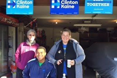 Further down the block a woman came to the door and said the she was supporting Hillary in this election. Another woman who lived there joined us on the porch. She said she could not vote because she was a felon. The first woman explained that she was also had a felony conviction but had cleared up her voting status and proudly said that she had been able to vote in the last two elections. Her friend regretted not having taken the responsibility to do the same as she recognized that this year's election was really an important one. She asked her friend to help her straighten out her voting status, and they agreed to sort it out next week.