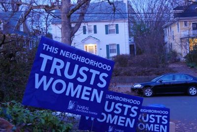 The organization went door to door offering signs, and neighbors were "glad to have a way to show their resistance to the anti-choice and anti-woman agenda," an organizer said.