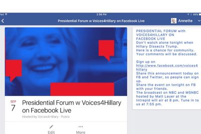 Hillary and Trump face off on NBC and MSNBC tonight night. Voices4Hillary will be hosting a Facebook Live session so we can all share our comments and cheer Hillary on.