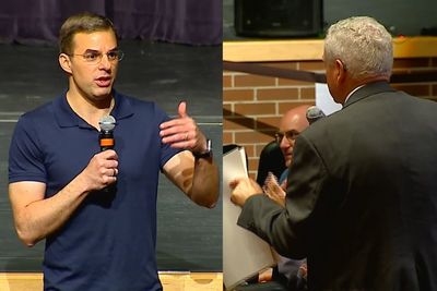 That was earlier in the day. Then Justin Amash faced his constituencies. Watch now.