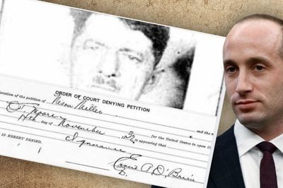The picture on the cover of this article features Nison (Max) Miller, Stephen Miller, who applied for naturalization as an American citizen, according to an application found by Renee Stern Steinig, a former president of the Jewish Genealogy Society of Long Island. He was denied, and his slip was labeled "ignorant." Stern Steinig noted in a Yahoo News article that this was probably because he couldn't answer a few test questions,not because he wasn't smart or worthy of citizenship. Eventually, he retook the test and passed.https://forward.com/fast-forward/403699/even-stephen-millers-great-grandfather-had-trouble-passing-citizenship/