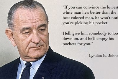 As President Lyndon B. Johnson said in the 1960s to a young Bill Moyers: "If you can convince the lowest white man he's better than the best colored man, he won't notice you're picking his pocket. Hell, give him somebody to look down on, and he'll empty his pockets for you."