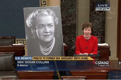 In the decades since, Collins has spoken frequently about Smith's impact on her life. From time to time, you can even spot her wearing the golden elephant pin — one of her "most treasured possessions" — bequeathed to her by Smith's family after her death in 1995. Indeed, it is impossible to understand either the purpose of Senator Collins's career, or the depths of its failure, without considering her relationship to Margaret Chase Smith.