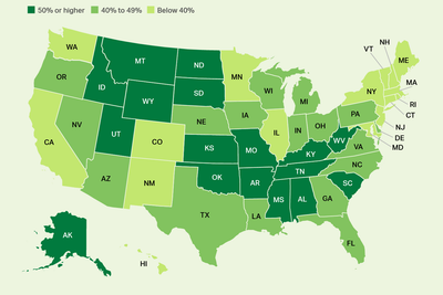 West Virginia (62%) and Wyoming (61%) residents were most approving of Trump's performance in 2018 and were the only two states with ratings above 60%. South Dakota, North Dakota, Alaska, Mississippi and Alabama had the next-highest approval ratings for Trump, with Tennessee, Kentucky and Arkansas constituting the remainder of the top 10. All but Mississippi ranked among the top 10 states in 2017.