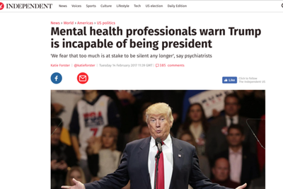 It is not the first time Mr Trump's mental health has been called into question. In February, Duty to Warn, which consists of psychiatrists, psychologists and social workers, signed an open letter warning that his mental state "makes him incapable of serving safely as president".