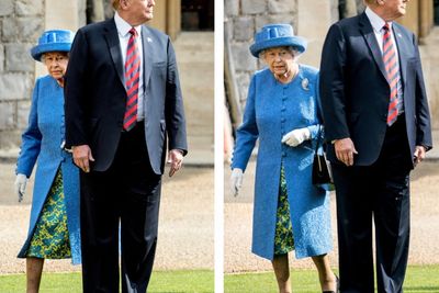 During President Trump's hourlong visit with the queen at Windsor Castle on Friday — they shared tea, a handshake and traditional pomp-and-circumstance — one awkward moment stood out on social media. It was when President Trump momentarily seemed to (gasp!) walk in front of the queen.