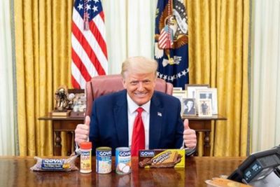 In a photo posted to his Instagram account, the president was seen seated behind the historic desk in the Oval Office with a bag of Goya red beans, a jar of Goya adobo powder, a can of Goya white beans, a can of Goya coconut milk and a packet of Goya chocolate wafers in front of him.
