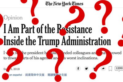 Do you think that the many in the audience even knew about the “anonymous” op-ed or in the New York Times before Trump spoke? I bet the Sulzbergers were glad for the plug, as we all should be.