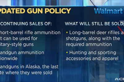 Walmart's remaining assortment in stores "will include long barrel deer rifles and shotguns, much of the ammunition they require, as well as hunting and sporting accessories and apparel," he said. Bartlett also said Walmart's current sporting goods assortment has a "broad depth" of merchandise to make up for lost sales.