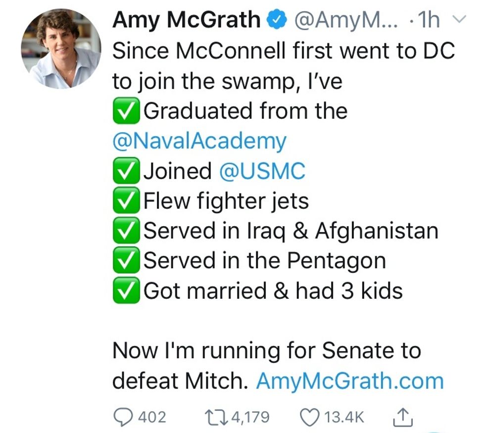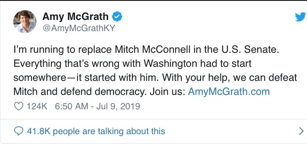 Here are two interesting tweets about the McGrath decision to run against McConnell.