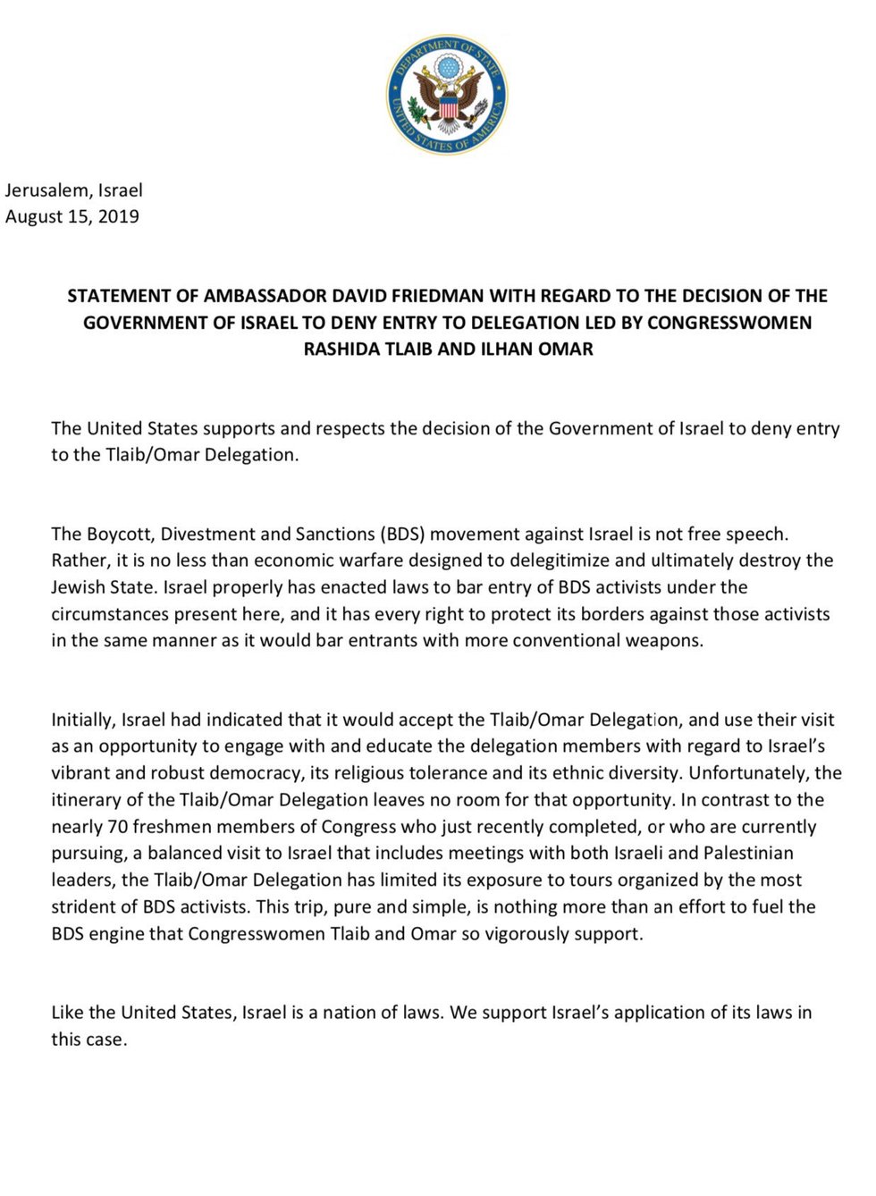 An American ambassador endorsing a travel ban on American members of Congress? https://t.co/8lalXLkk9p