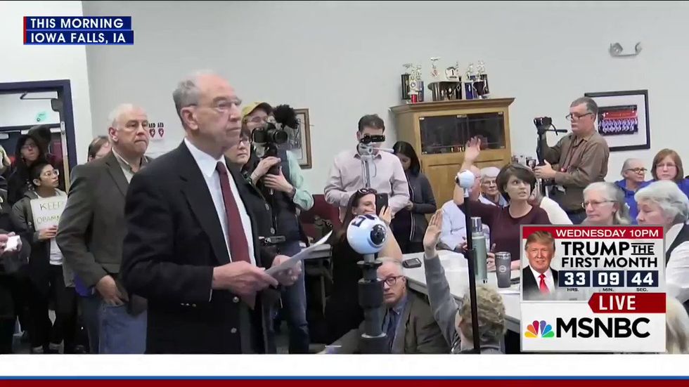 Angry constituents confront Chuck Grassley in Iowa: “If it wasn’t for Obamacare, we wouldn’t be able to afford insurance!” https://t.co/vrbhbOiBMM