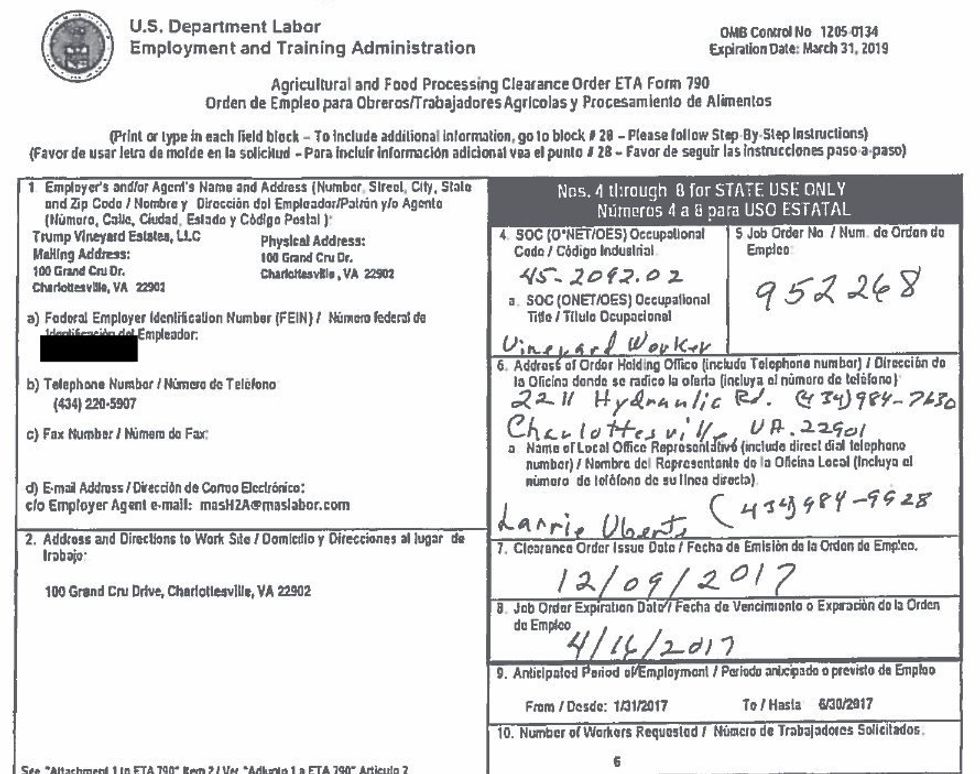 The specific form lists a Virginia winery owned by Trump's son, Eric, which indicates that the company is looking to import cheap, foreign labor. In total, Trump-owned companies have asked the department "to hire at least 263 foreign guest workers since he launched his presidential campaign," BuzzFeed News reported on Thursday.
