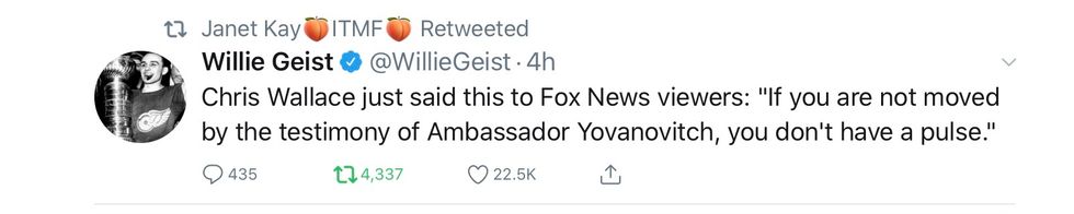#Once again, Trump brought out his best bully, committing the crime of witness tampering. These hearings are #riveting, as we painfully learn about #TrumpAbuseofPower #TrumpPoliticalAgenda #ImpeachRemoveTrump