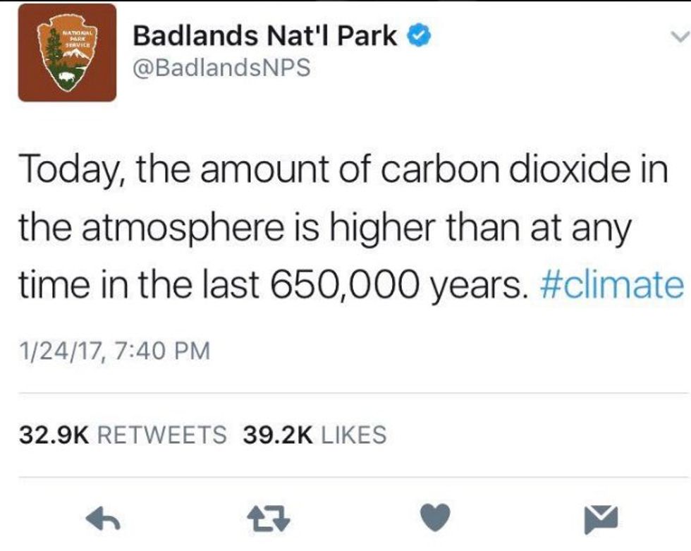 Badlands National Park posted a basic scientific fact that defied Trump. Now, it's been deleted. Retweet anyway. https://t.co/Ed0Xi2IPAz