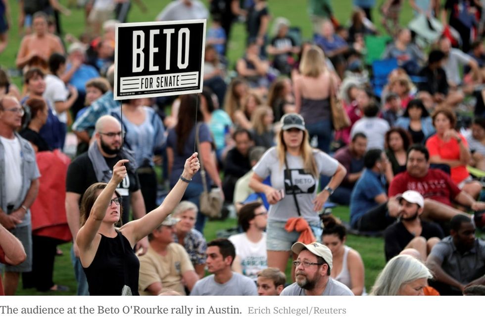 So instead of centrist triangulation, O'Rourke — like Abrams and Gillum — is speaking to the aspirations of his base, and betting that other voters will be won over by his honesty. He defended the right of N.F.L. players to take a knee during the national anthem to protest police killings of unarmed African-Americans, supports "Medicare for All," and slams Cruz for being in the pocket of the National Rifle Association. He's campaigning in a conservative state, but refusing to let the right set the terms of debate.