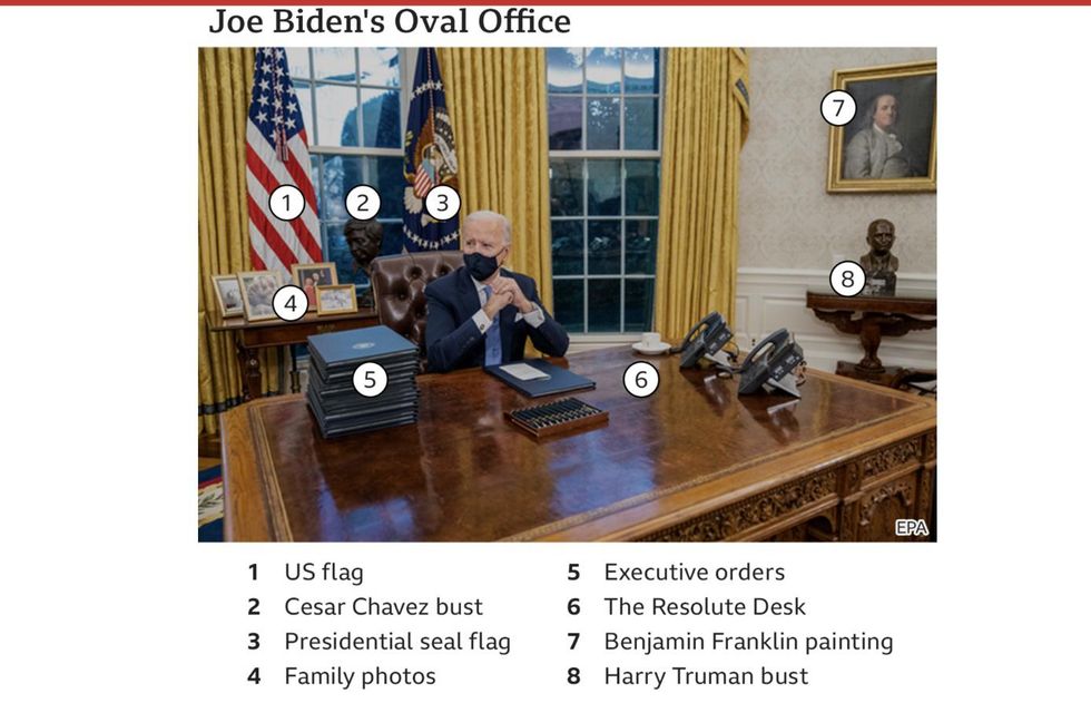 Incoming presidents bring their own personal touch to the Oval Office and much is being read into the way Joe Biden has chosen to decorate his new place of work.