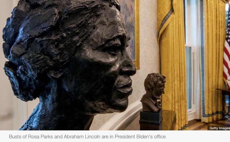 The room has been filled with portraits and busts of some of the most iconic and influential leaders of American history. "It was important for President Biden to walk into an Oval that looked like America and started to show the landscape of who he is going to be as president," Ashley Williams, the deputy director of Oval Office operations, told The Washington Post during an exclusive tour.