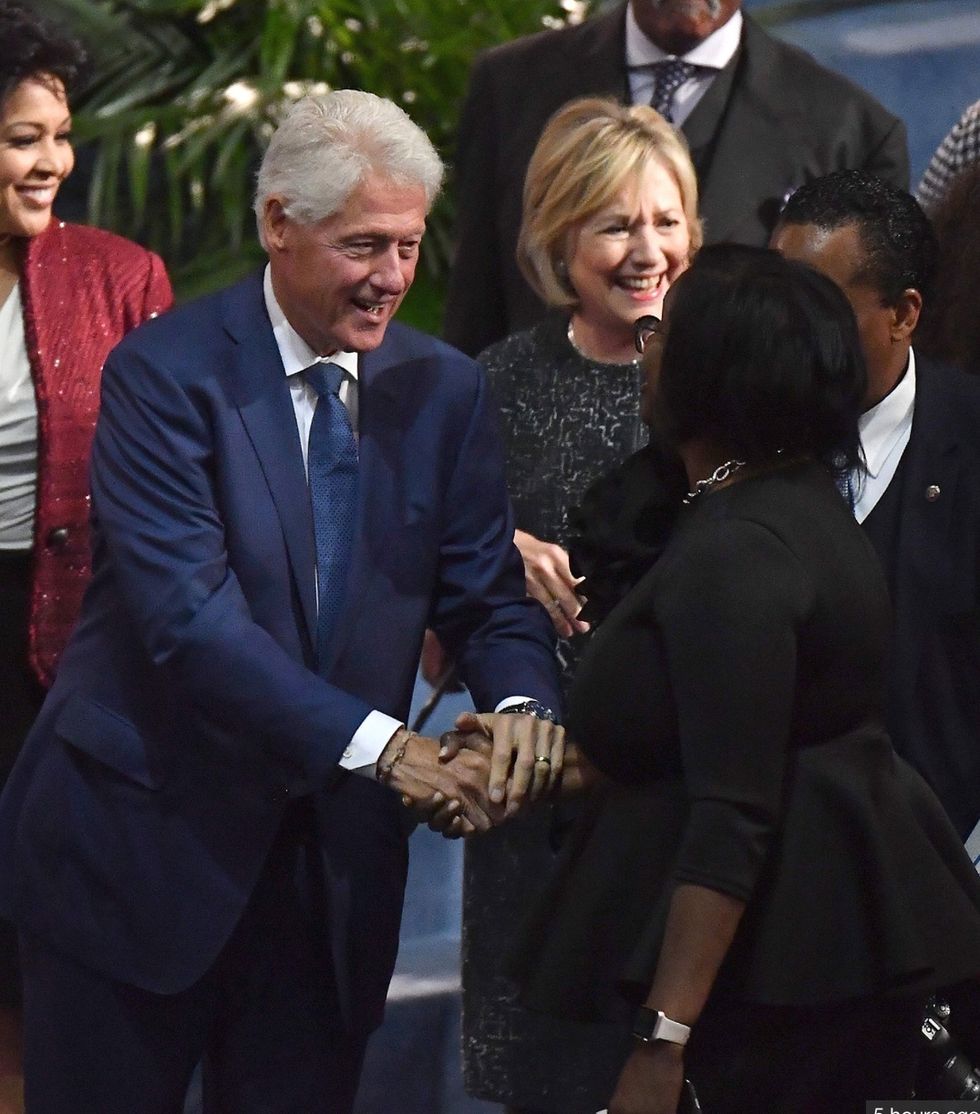 The Clintons and Franklin go way back. (Tellingly, their arrival at Detroit's Greater Grace Temple brought a standing ovation.) Franklin appeared and performed at a number of events during the Clinton years ― a time when the White House was occupied by a pair of superfans.