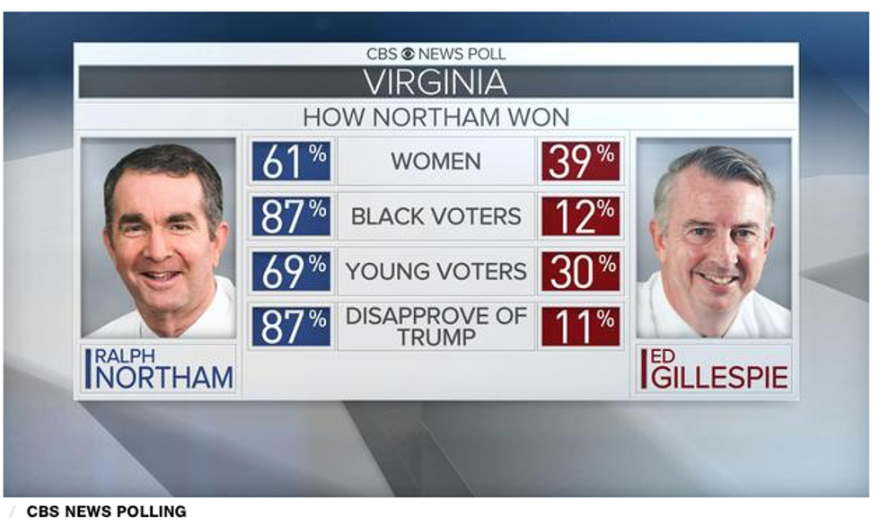 On November 7th, 2017, when Democrat Ralph Northam won the Virginia Governorship over Republican Ed Gillespie, and Democrats overwhelmed Republicans across the state in the most sweeping House of Delegates shift since Reconstruction, pundits largely attributed the victory to white, college-educated women. This was a partial truth at best.