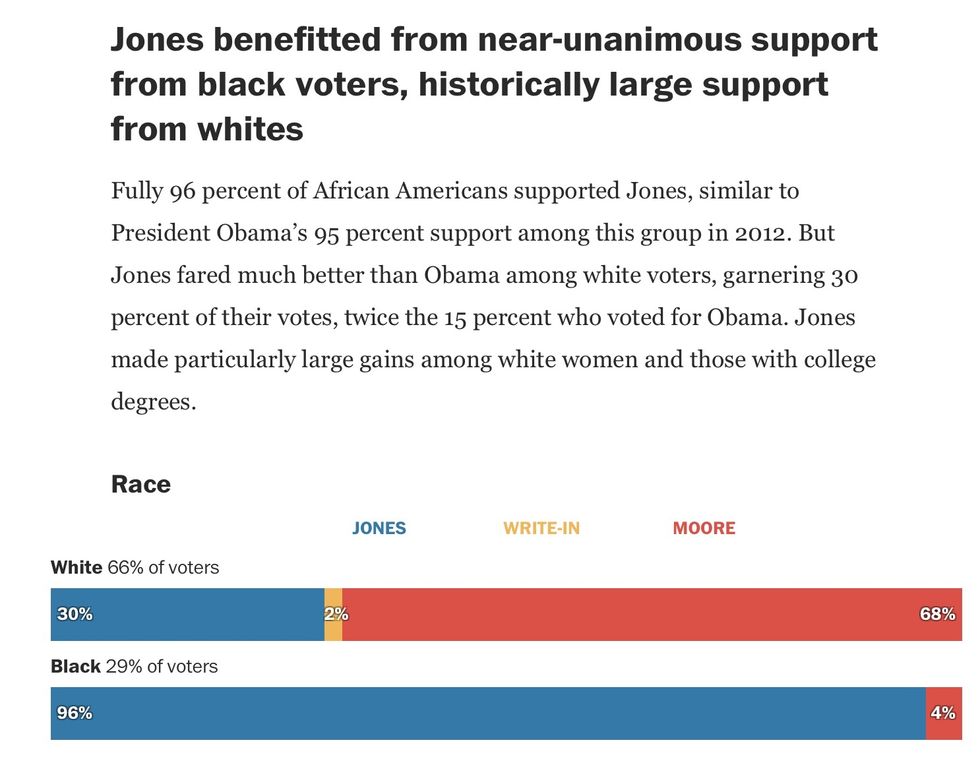 Similarly, and with even more clarity, last night, when the Red State of Alabama elected Democrat Doug Jones to the United States Senate last night, defeating the slavery loving, sexual predator, child abuser, Putin and Trump embracing Roy Moore, Black Voters mattered.