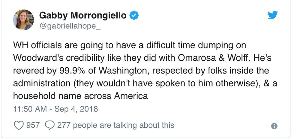 But considering the book's author, it's going to be harder for the White House to discredit Fear than it was for them to dismiss Fire and Fury or, more recently, Unhinged, Omarosa Manigault-Newman's tell-all account of her time with the administration, as not credible.