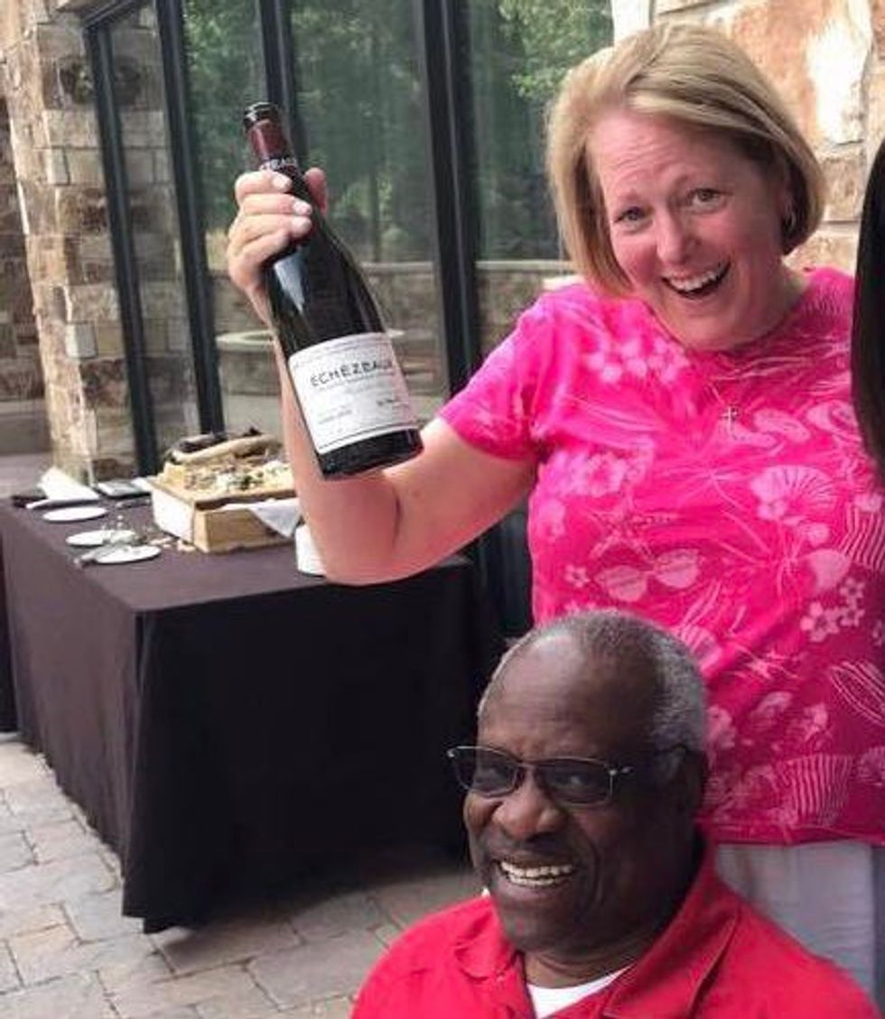 BREAKING: As American women despair about abortion rights being taken away from them, Supreme Court Justice Clarence Thomas and his wife Ginni post a photo of themselves enjoying a $5,135 bottle of fancy wine. RT IF YOU THINK THAT THEY ARE A DISGRACE! https://t.co/LPV8EYIjJQ