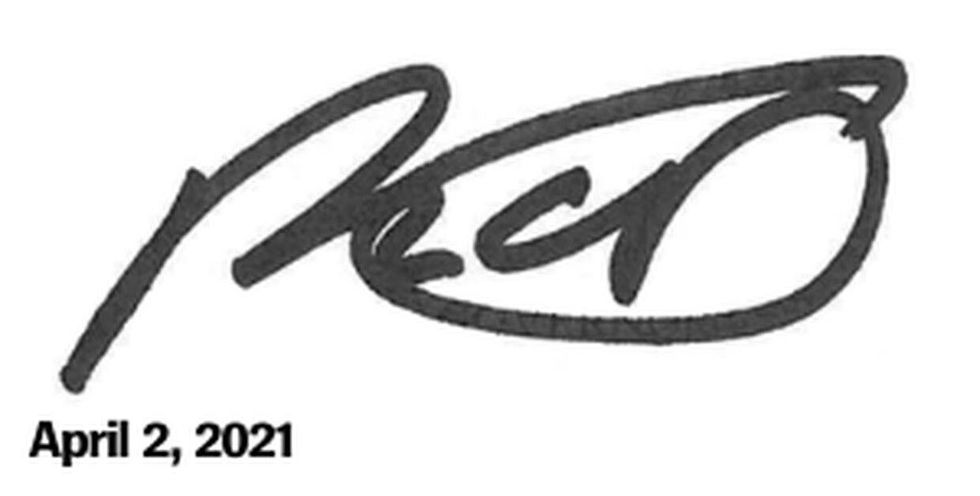 Gov. DeSantis' signature from an April 2, 2021, executive order. [ State of Florida ]