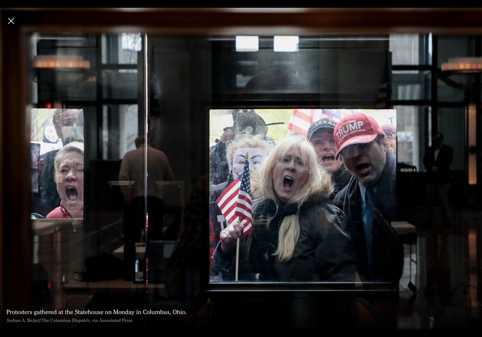 Mr. Trump's tweets were a remarkable example of a president egging on demonstrators. Earlier this week, more than 1,000 protesters organized by conservative groups created a traffic jam on the streets around the State Capitol in Lansing, to complain that the restrictions were bad for small businesses. Over protesters, not in vehicles, waved banners in support of Mr. Trump and protested Gov. Gretchen Whitmer, who has been a target of Mr. Trump's ire, by chanting, "Lock her up."