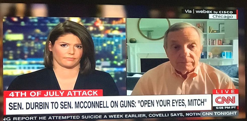 Dick Durbin calls on Mitch McConnell to open his eyes. There are no military weapons of mass destruction in the Constitution- “originalism”