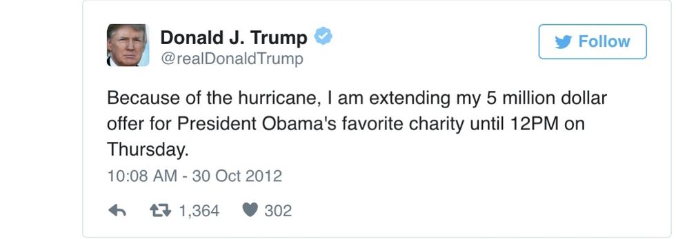 This is how Trump responded to Hurricane Sandy — by asking for Obama's records in a bet he never made good on (as usual):